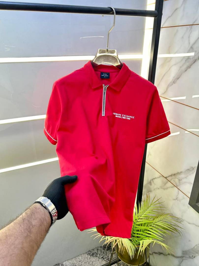 Arman_i Exchange Red Zipper Premium Collar Neck Polo T-shirt F2860-RE