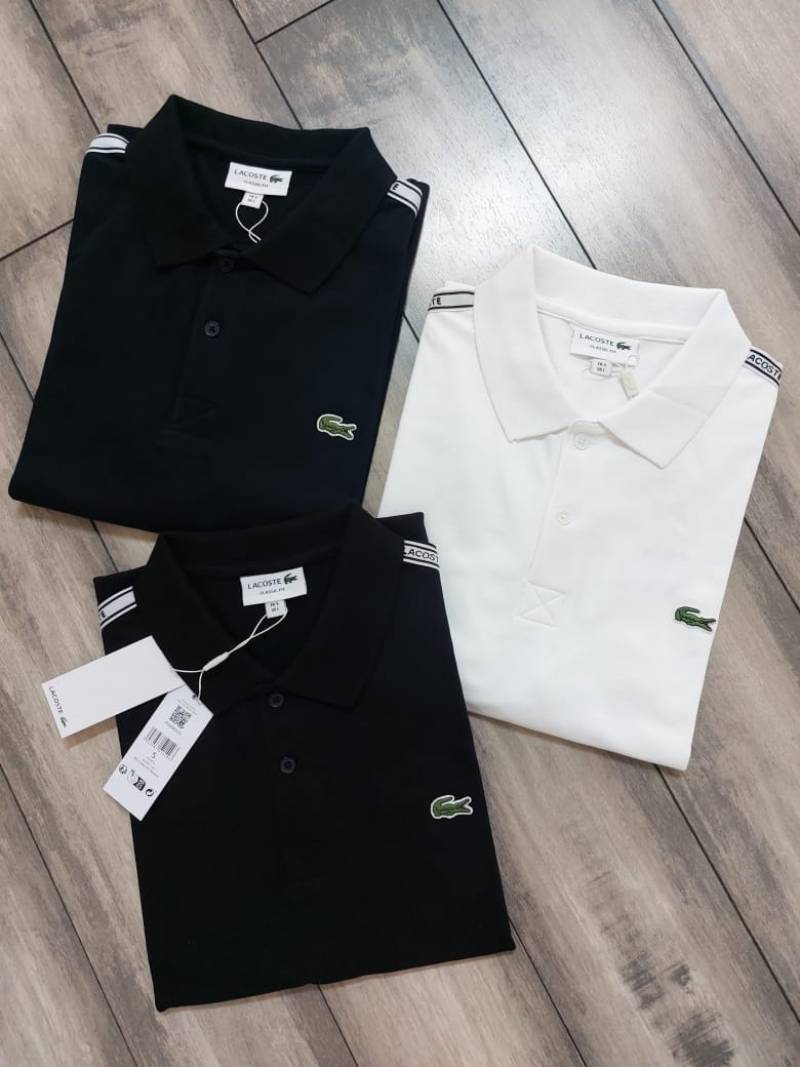 Sale Lacost e Black Polo Premium Collar Neck T-shirt F2784-BL