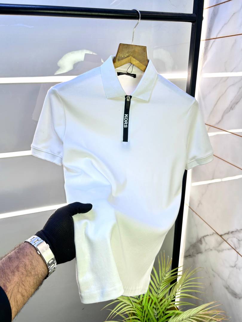 Sale Michael_Kors White Polo Premium Collar Neck T-shirt F2991-WH
